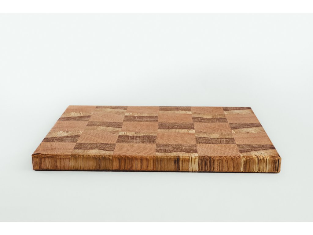 Spojení dubu klasického a červeného je myšlenka, která se už realizace dočkala, a výsledkem jsou Zadubení příbuz. U prkénka O&K jsem však použil větší dubové hranoly. Takže... jemnější kostičky nebo pořádné kostky? Výběr je na Vás...